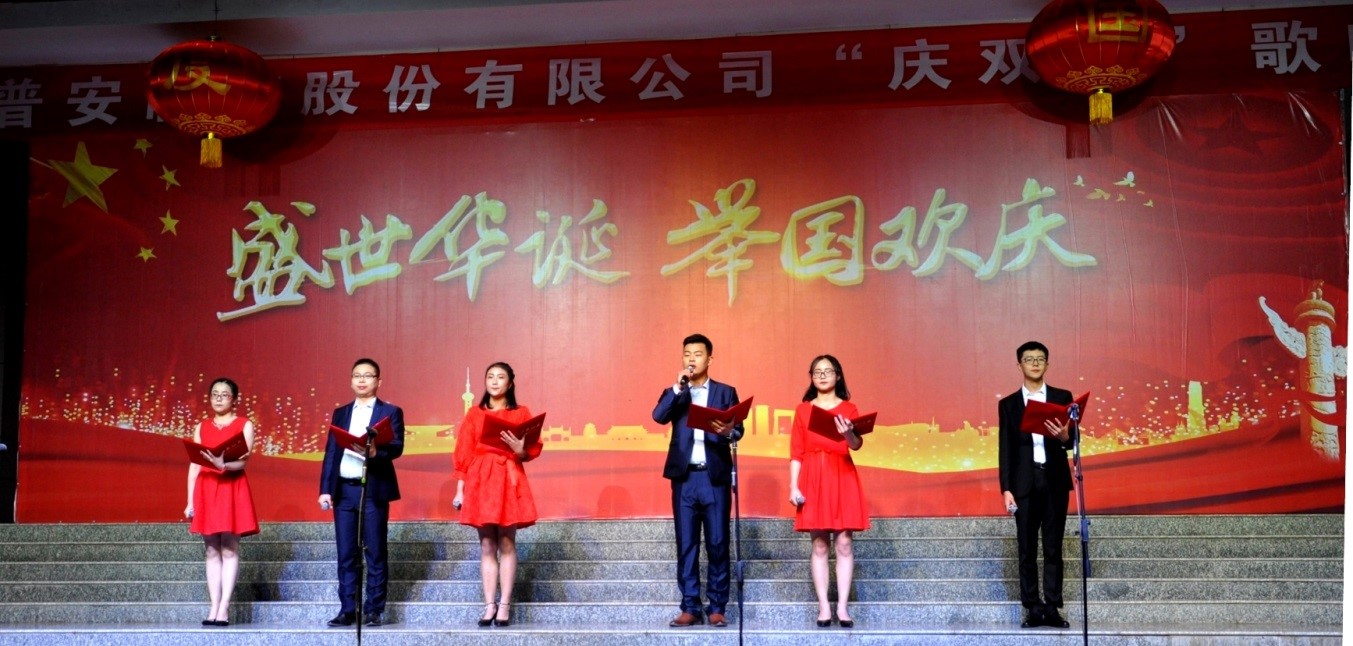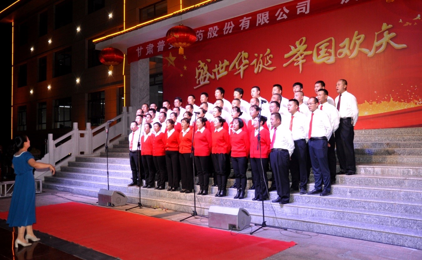 為慶祝建國(guó)71周年,豐富員工精神文化生活,不斷激發(fā)全體職工的愛(ài)國(guó)熱情,增強(qiáng)職工凝聚力和向心力。9月29日晚,甘肅普安制藥股份有限公司 “慶雙節(jié)”歌詠比賽活動(dòng)在辦公樓前廣場(chǎng)隆重舉行,公司干部職工激情高歌,祝福祖國(guó),祝福普安。
