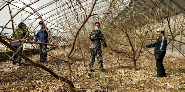 在永昌農(nóng)場(chǎng)的溫室大棚內(nèi),工作人員正在修剪油桃樹枝,讓每株樹冠保持一定形狀和大小,樹體結(jié)構(gòu)合理,枝條疏密得當(dāng),便于生長管理。12座大棚共計(jì)1200多棵樹,預(yù)計(jì)20日前完成修剪。農(nóng)場(chǎng)及早聯(lián)系農(nóng)資調(diào)運(yùn),為油桃提前上市做好準(zhǔn)備。