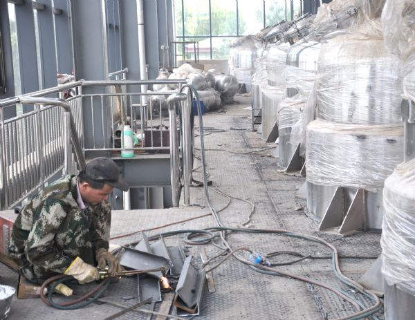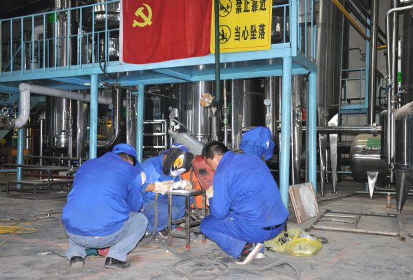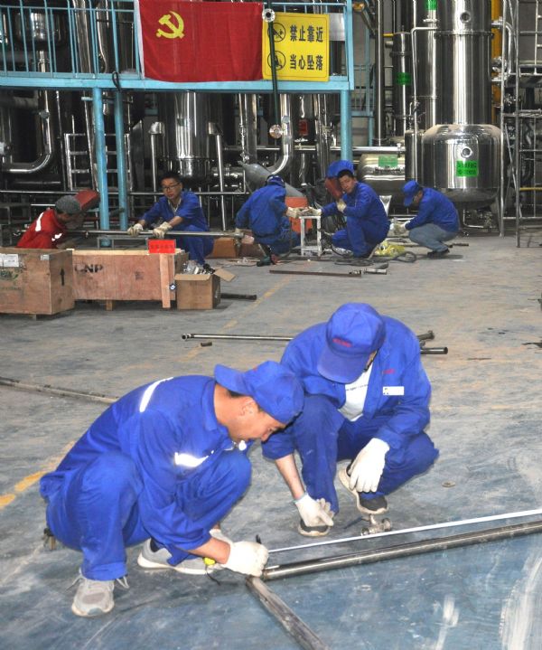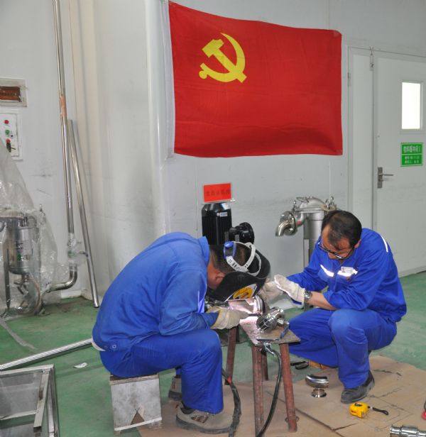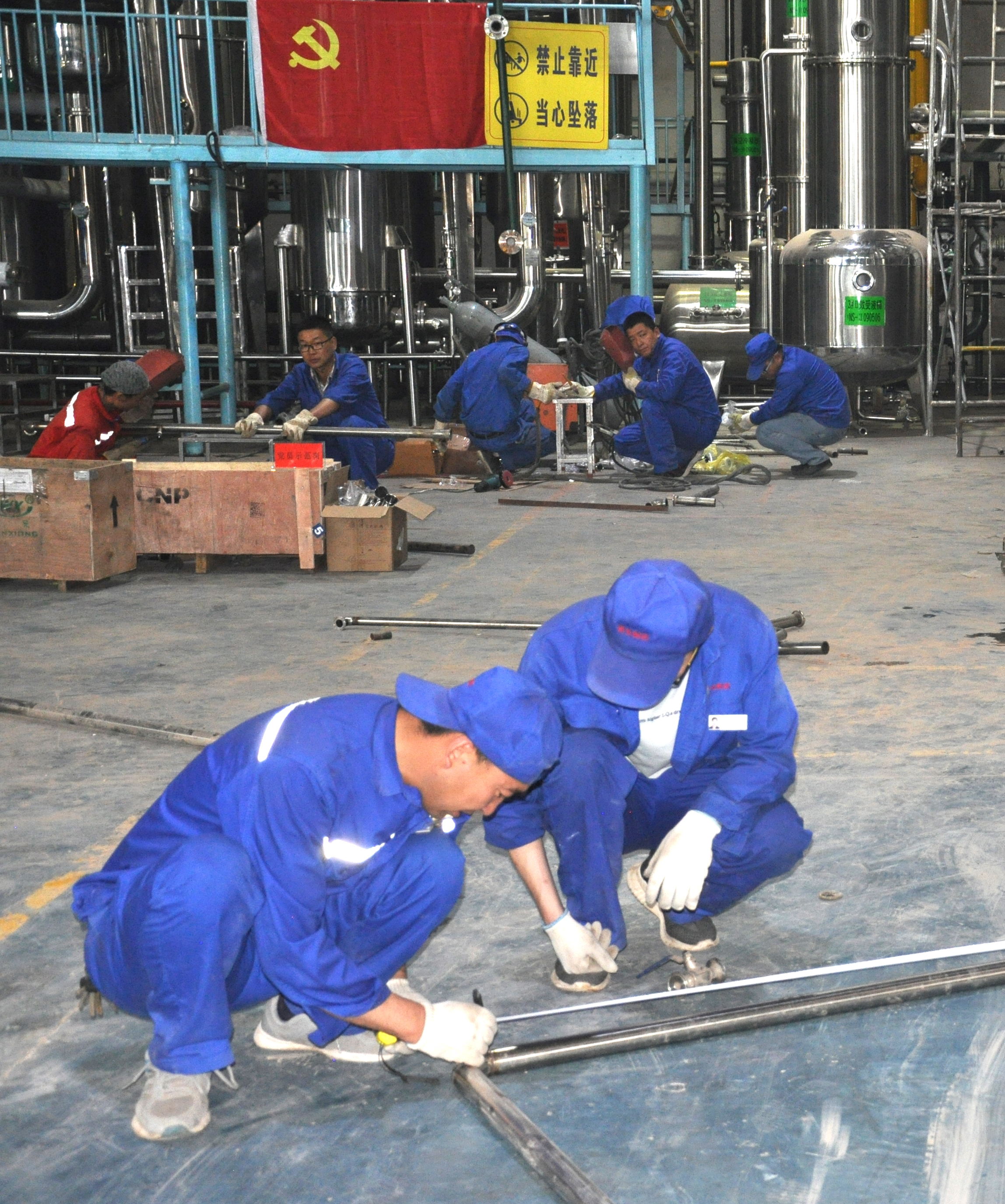 7月中旬,公司正式停機,公司領導、生產管理部、維修班及公司技術人員成立了技改小組,對車間廠房、設備設施及管線等進行施工安裝。為了保證項目進度,確保擴產改造工程順利進行,公司黨員充分發(fā)揮黨員先鋒模范作用,積極開展技術傳幫帶,自發(fā)組織設立了三個“黨員示范崗”。黨員領導干部帶頭工作在一線,帶領職工齊心協力攻克難題,不辭辛勞的加班加點工作。截至7月22日,提取車間廠房擴建、提取罐、濃縮罐等已安裝完成,部分管線也已完成更換,新增的管道正在進行安裝;配制灌裝車間的功能間擴建已完成,配制罐和純化水儲罐也已安裝完成,正在進行管線連接,空調系統(tǒng)的安裝也在同時進行。