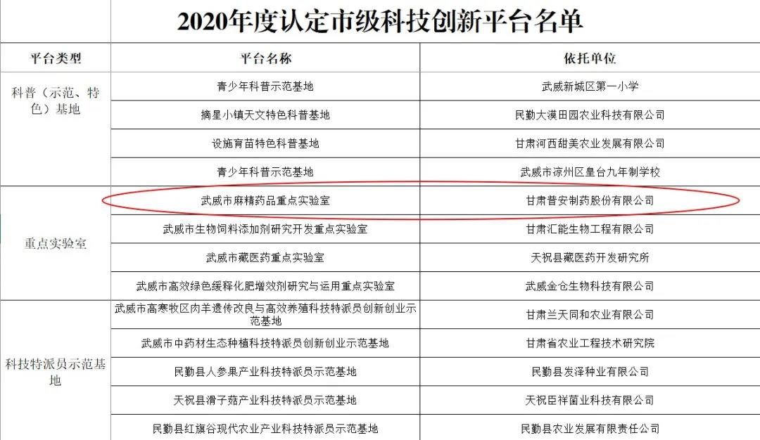 喜報!普安制藥通過“2020年武威市麻精藥品重點實驗室”認(rèn)定