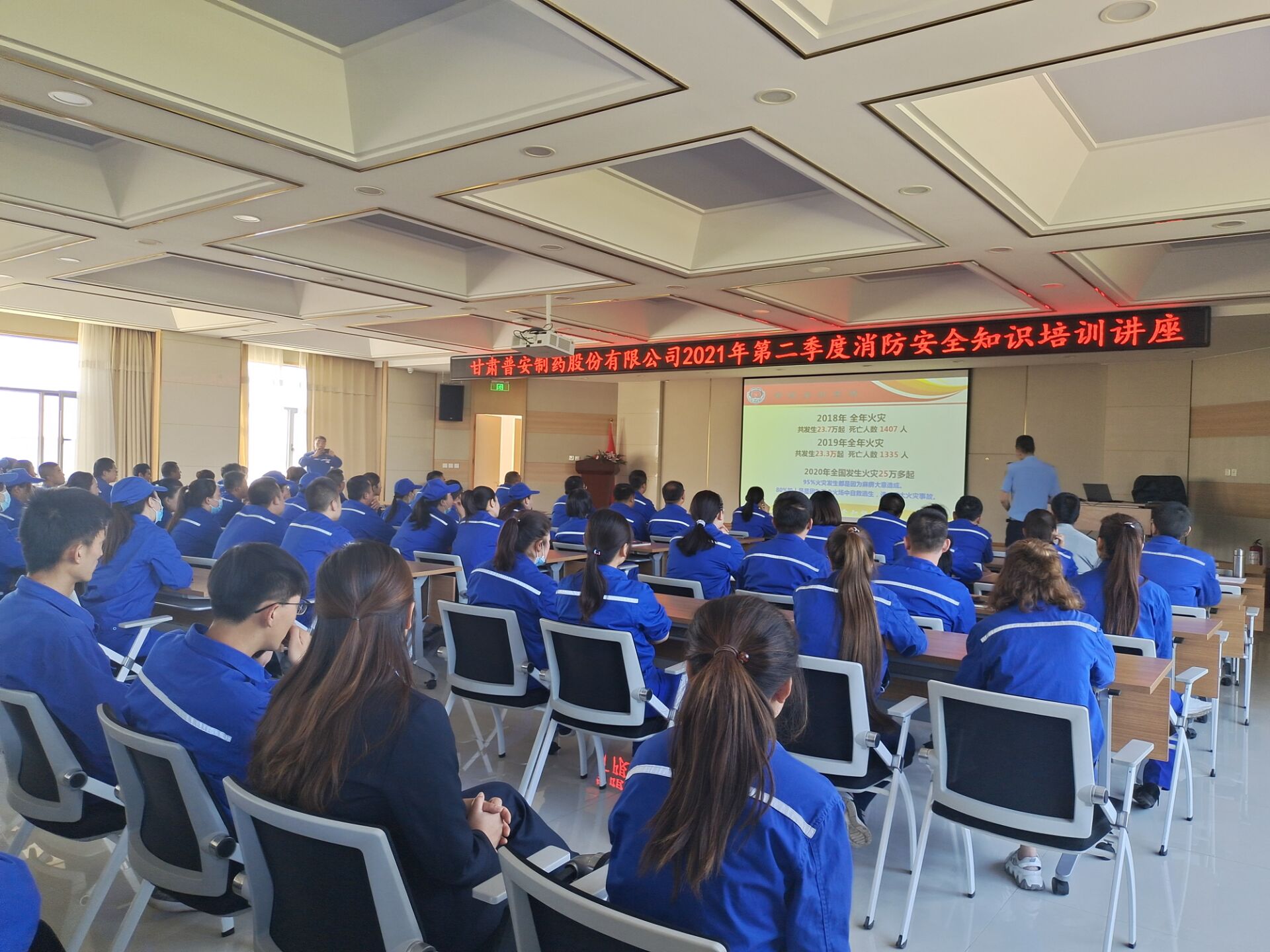 為踐行全國(guó)第20個(gè)“安全生產(chǎn)月”和“安全生產(chǎn)隴原行”活動(dòng),進(jìn)一步增強(qiáng)員工消防安全意識(shí)和自我防范意識(shí),提高員工自救互救能力。6月3日,普安公司組織開展消防安全培訓(xùn)及演練活動(dòng),特邀甘肅省家盾消防咨詢服務(wù)有限公司丁永忠教官進(jìn)行培訓(xùn)并指導(dǎo)演練,全體員工約300余人參加。