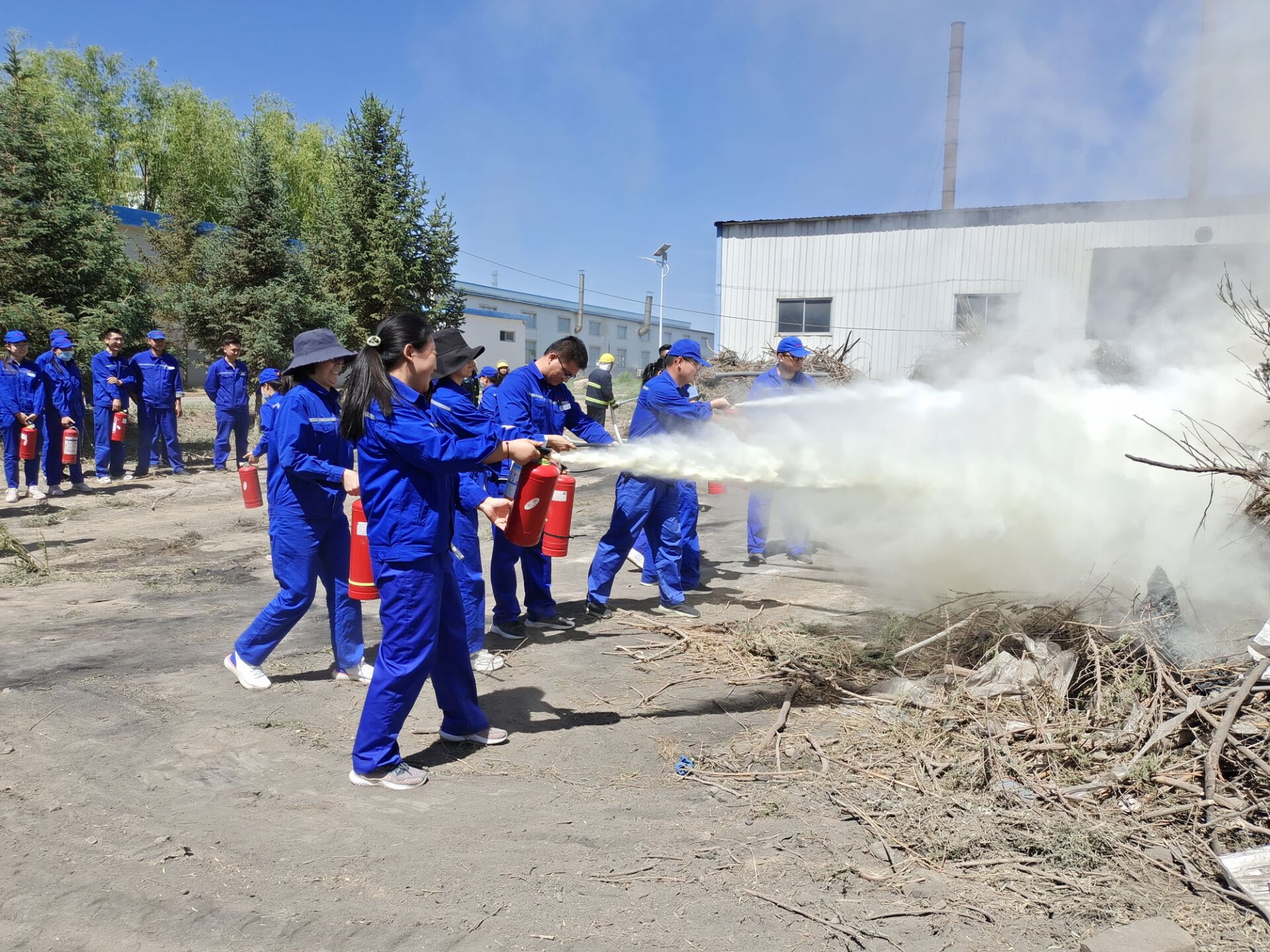 為增強(qiáng)安全消防員實(shí)戰(zhàn)本領(lǐng),培訓(xùn)結(jié)束后,參加培訓(xùn)的人員在后廠區(qū)空曠地帶舉行了滅火演練。在直觀、真實(shí)的火場(chǎng)環(huán)境中,演練人員嚴(yán)肅認(rèn)真、服從指揮,使用滅火器115具,消防水帶6條,嚴(yán)格按照教官培訓(xùn)的滅火器操作步驟和使用方法進(jìn)行實(shí)操滅火。
