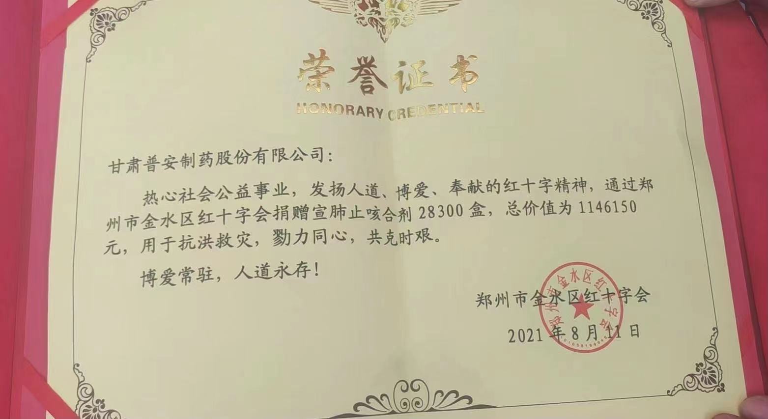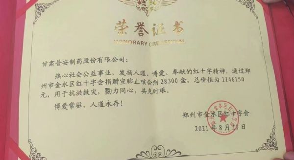 近期,國(guó)內(nèi)多地相繼發(fā)生新冠疫情,疫情防控形勢(shì)非常嚴(yán)峻、復(fù)雜,而河南省多地又受到洪澇災(zāi)害影響,洪澇災(zāi)害后面臨著災(zāi)情、疫情雙重挑戰(zhàn)。為履行社會(huì)責(zé)任,彰顯“一方有難,八方支援”的擔(dān)當(dāng),作為國(guó)有企業(yè),甘肅藥業(yè)集團(tuán)普安制藥會(huì)同中華中醫(yī)藥學(xué)會(huì)第一時(shí)間組織抗疫物資的捐贈(zèng)(價(jià)值114.6萬(wàn)元的藥品)供災(zāi)后防疫使用,助力河南省做好災(zāi)后疫情防控工作。