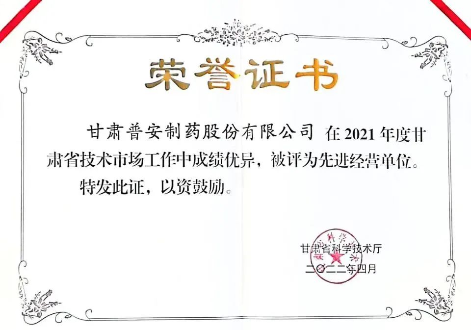 喜訊:甘肅藥業(yè)集團(tuán)所屬企業(yè)普安制藥獲評(píng)“2021年度甘肅省技術(shù)市場(chǎng)先進(jìn)經(jīng)營(yíng)單位”