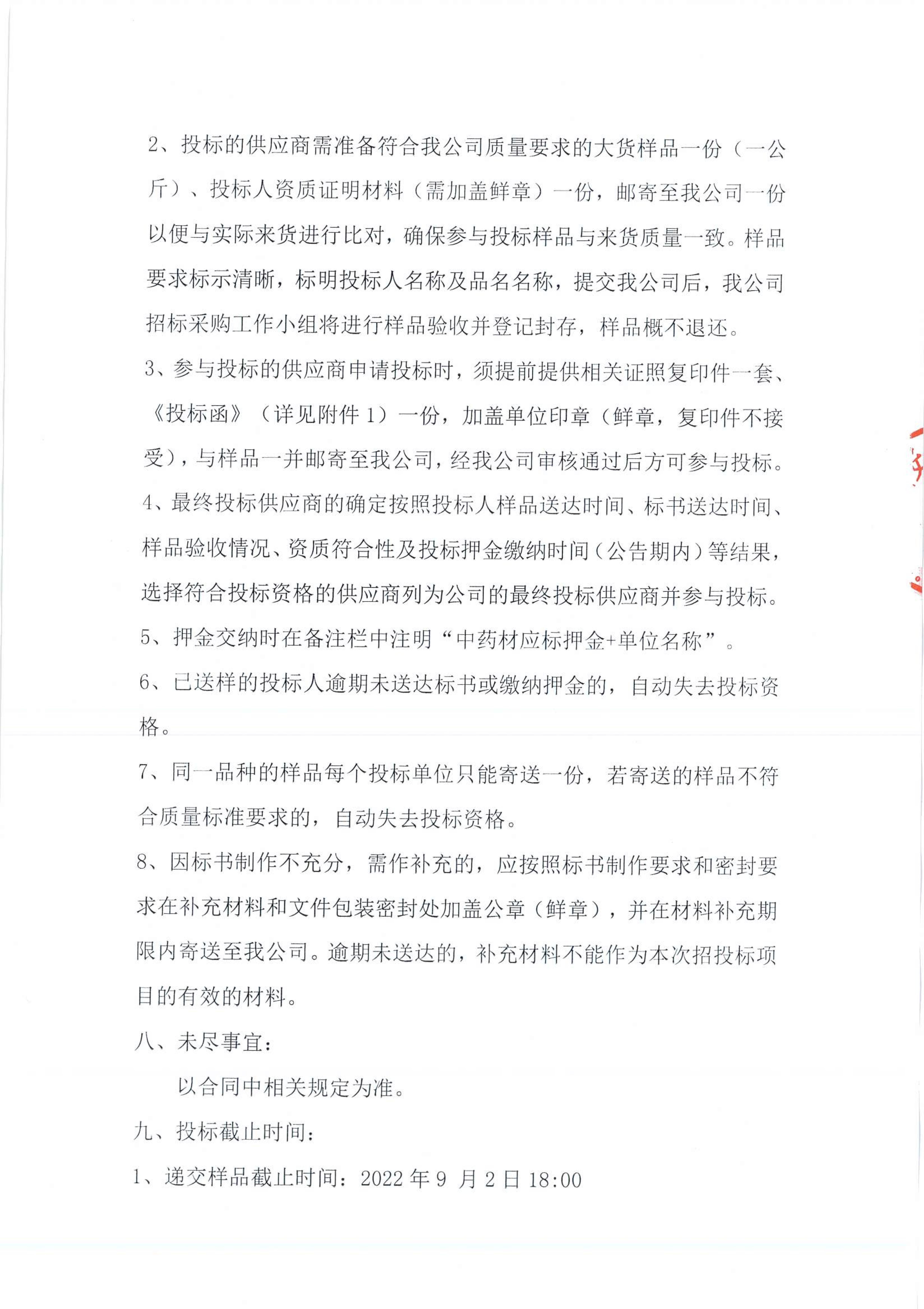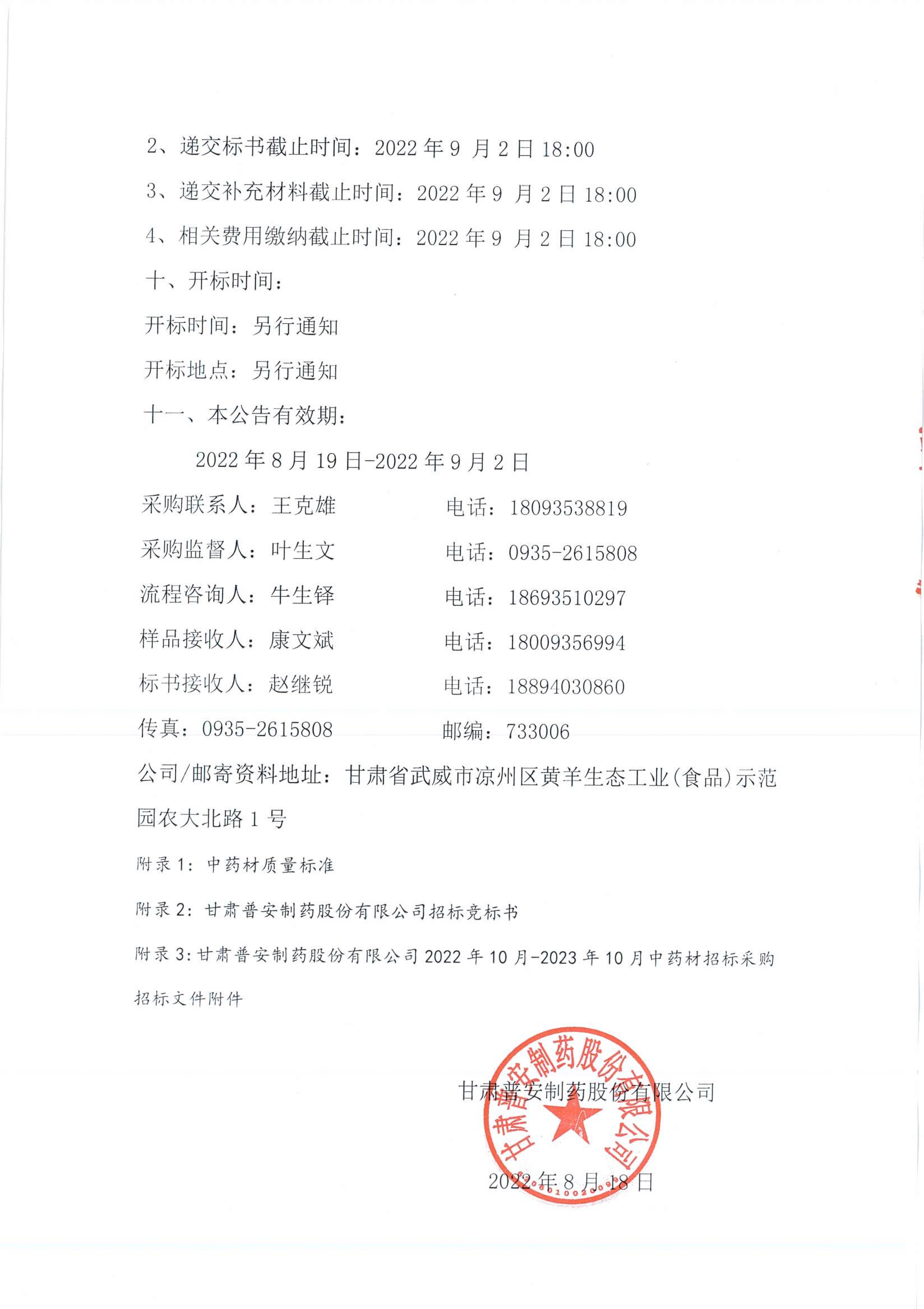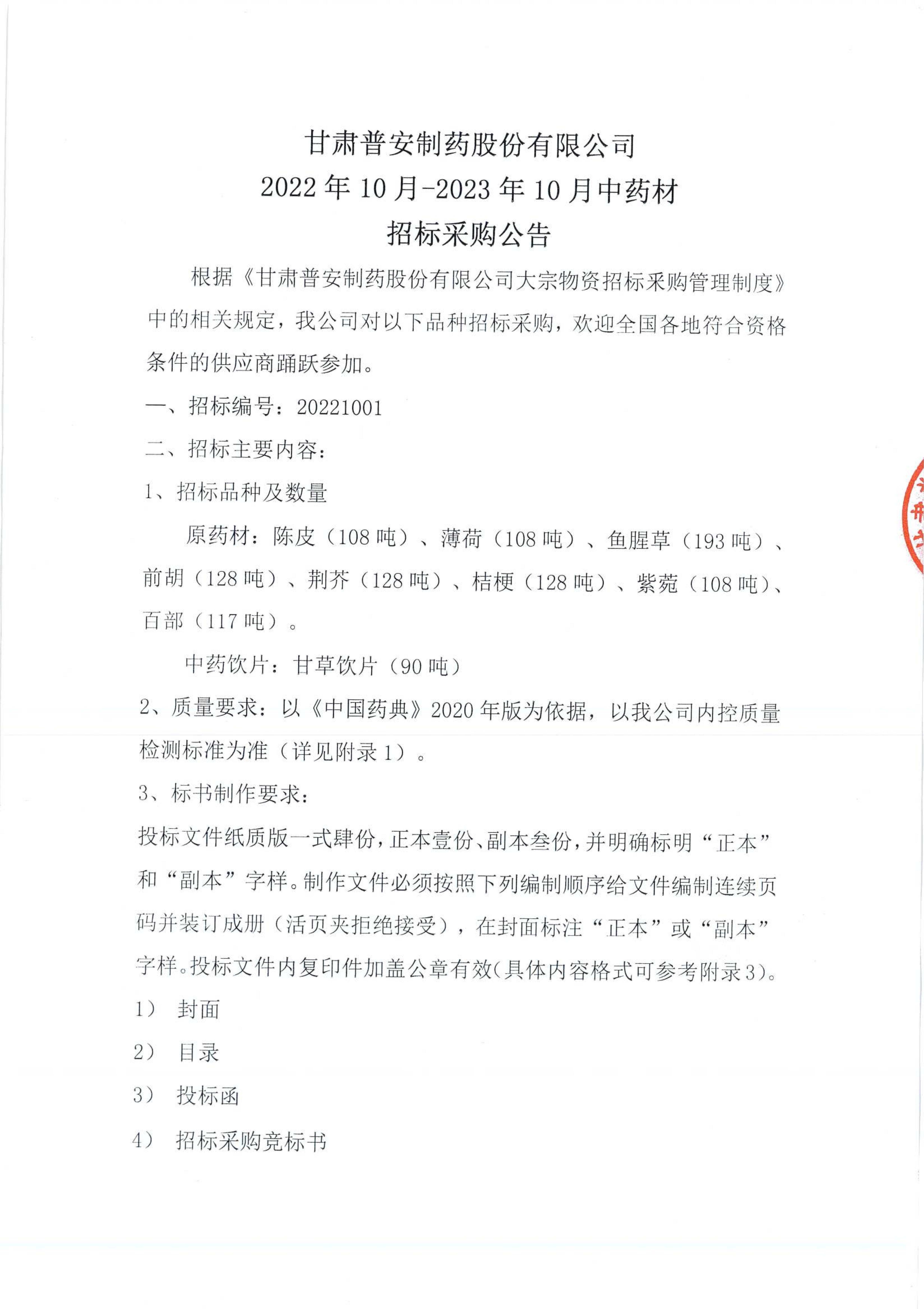 甘肅普安制藥股份有限公司2022年10月-2023年10月中藥材招標(biāo)采購公告