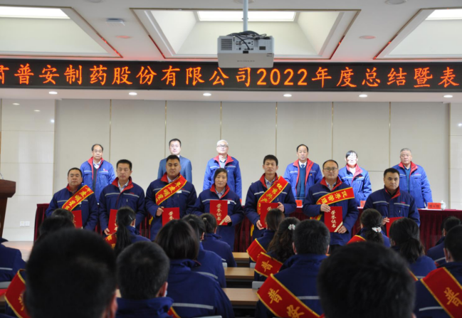 2023年1月16日,普安制藥2022年度總結(jié)暨表彰大會在三樓會議室順利召開。會議對2022年度工作中涌現(xiàn)出來的32名先進個人、5名擴產(chǎn)保供先進個人、5名疫情防控先進個人、8個先進班組及集體、2名優(yōu)秀管理者、1名優(yōu)秀科技工作者、3名優(yōu)秀黨員及優(yōu)秀黨務工作者、7名十年奉獻獎獲得者、2名十五年奉獻獎、15個科技及管理創(chuàng)新項目進行了表彰。