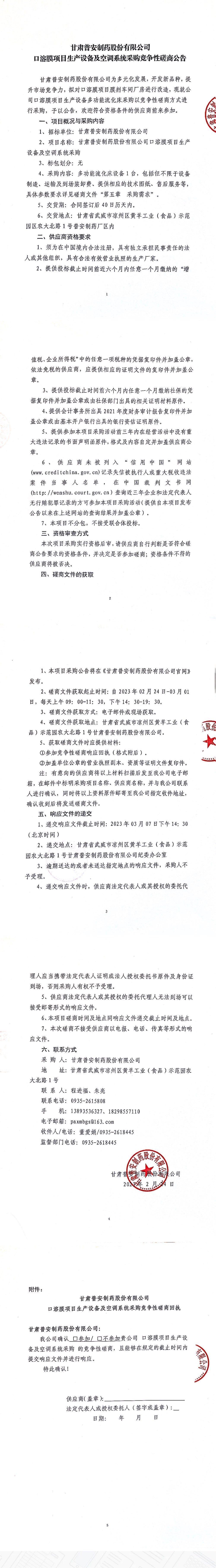 甘肅普安制藥股份有限公司口溶膜項(xiàng)目生產(chǎn)設(shè)備及空調(diào)系統(tǒng)采購競爭性磋商公告