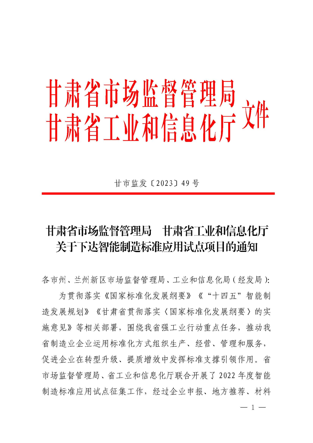 近日,甘肅省市場(chǎng)監(jiān)督管理局、甘肅省工業(yè)和信息化廳公布了省級(jí)智能制造標(biāo)準(zhǔn)應(yīng)用試點(diǎn)項(xiàng)目名單。