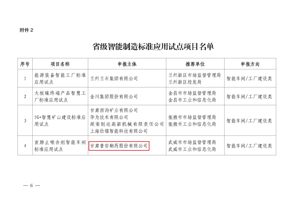 “三抓三促”踐行中 ᅵ 【喜報(bào)】甘肅藥業(yè)集團(tuán)普安制藥入選省級(jí)智能制造標(biāo)準(zhǔn)應(yīng)用試點(diǎn)項(xiàng)目名單