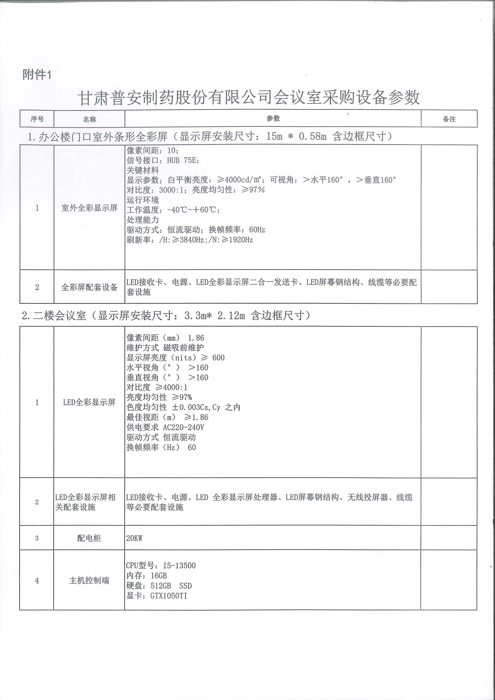 甘肅普安制藥股份有限公司會(huì)議室設(shè)備升級(jí)改造報(bào)價(jià)邀請(qǐng)公告