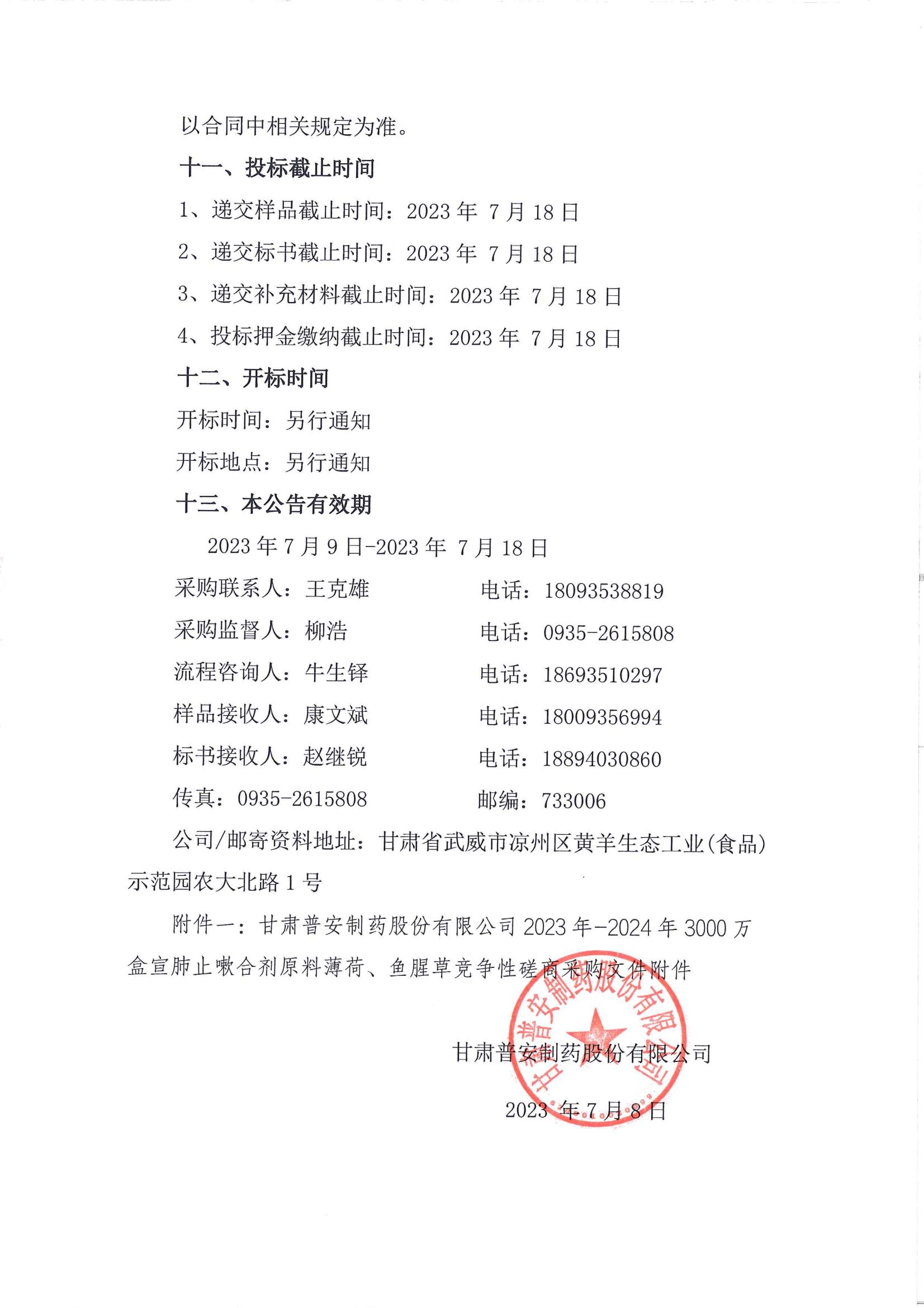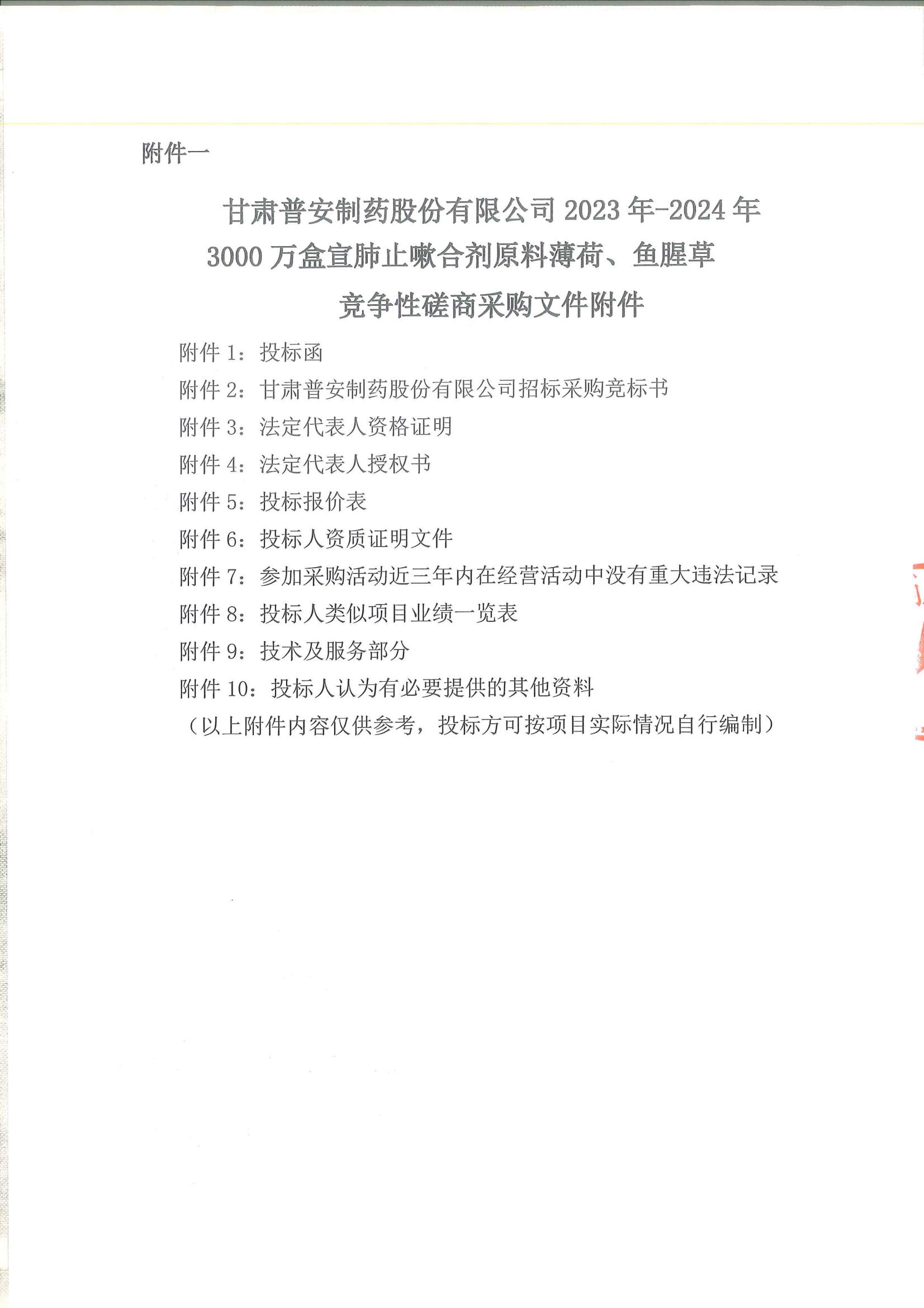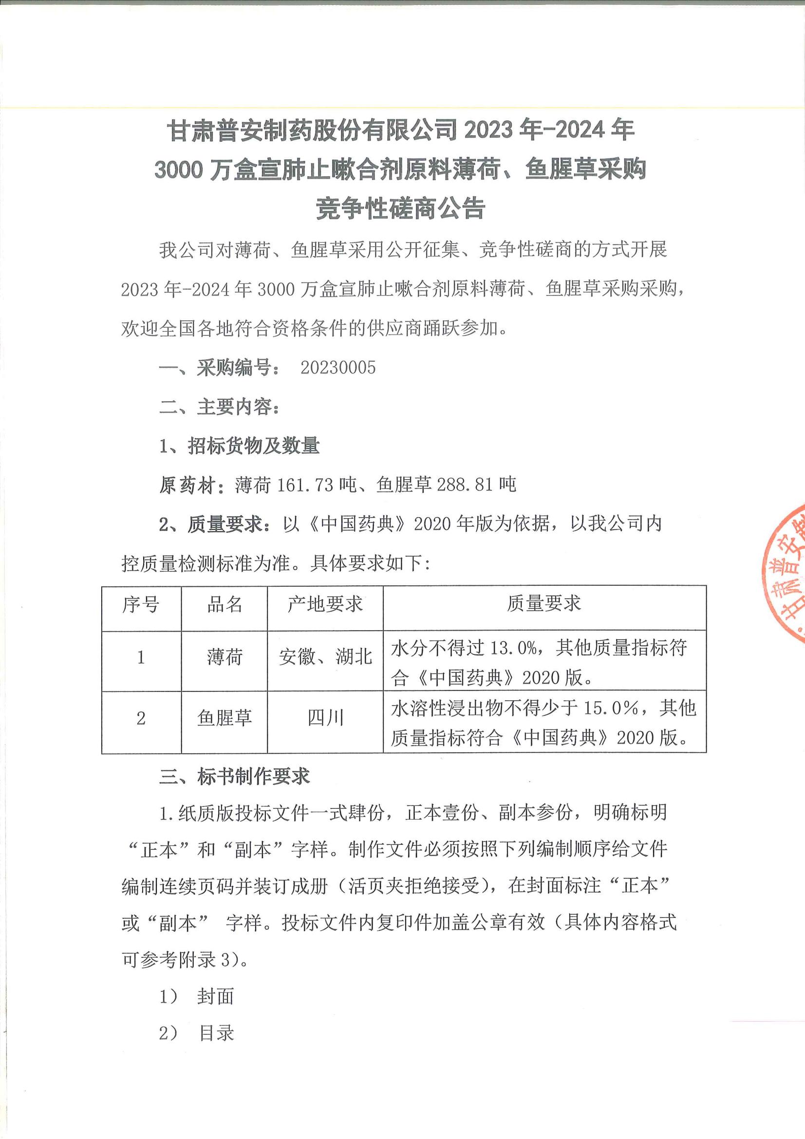 甘肅普安制藥股份有限公司2023年—2024年3000萬(wàn)盒宣肺止嗽合劑原料薄荷、魚腥草采購(gòu)競(jìng)爭(zhēng)性磋商公告