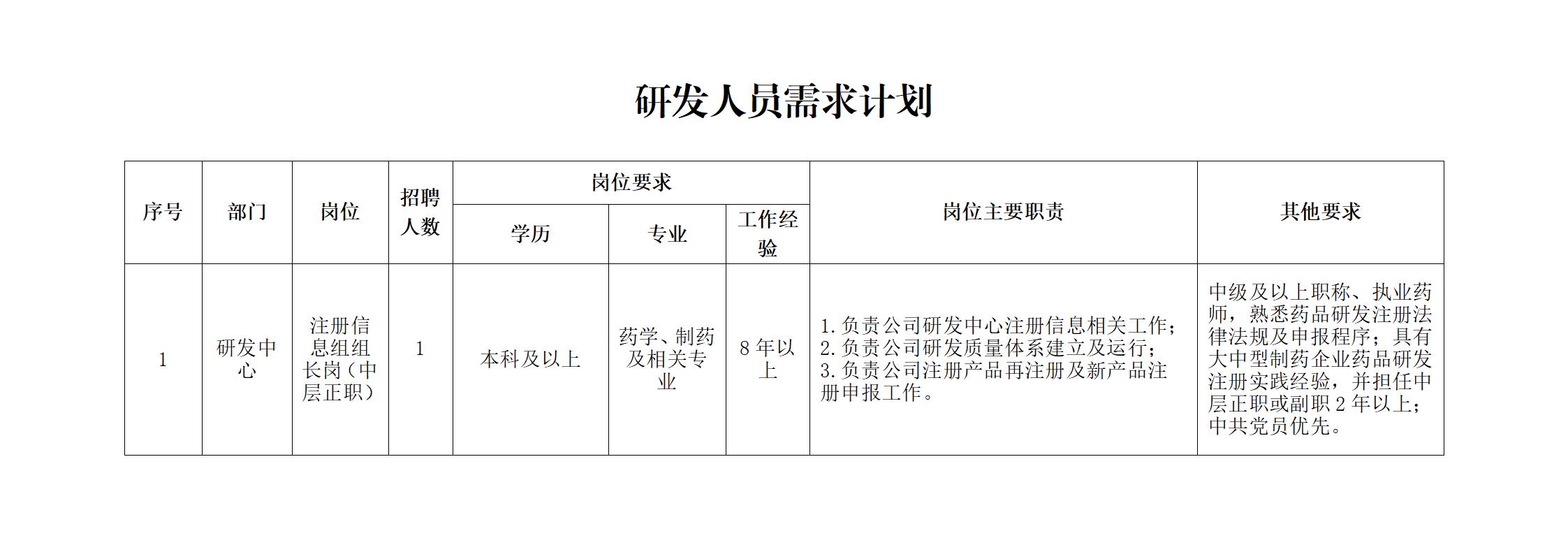 甘肅普安制藥股份有限公司 關(guān)于公開(kāi)招聘研發(fā)人員的公告