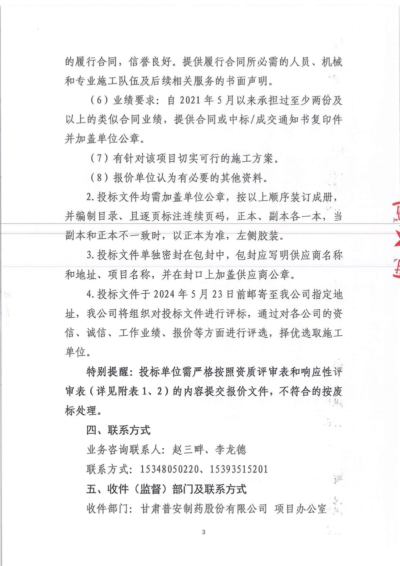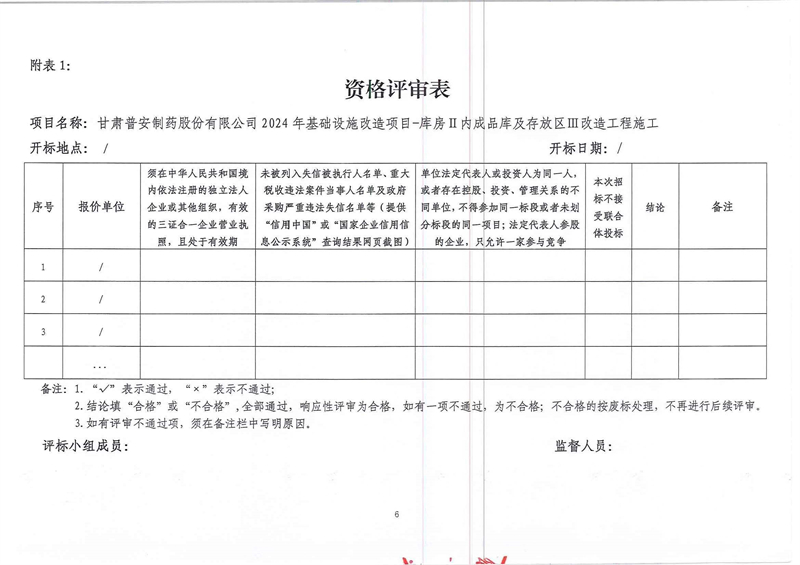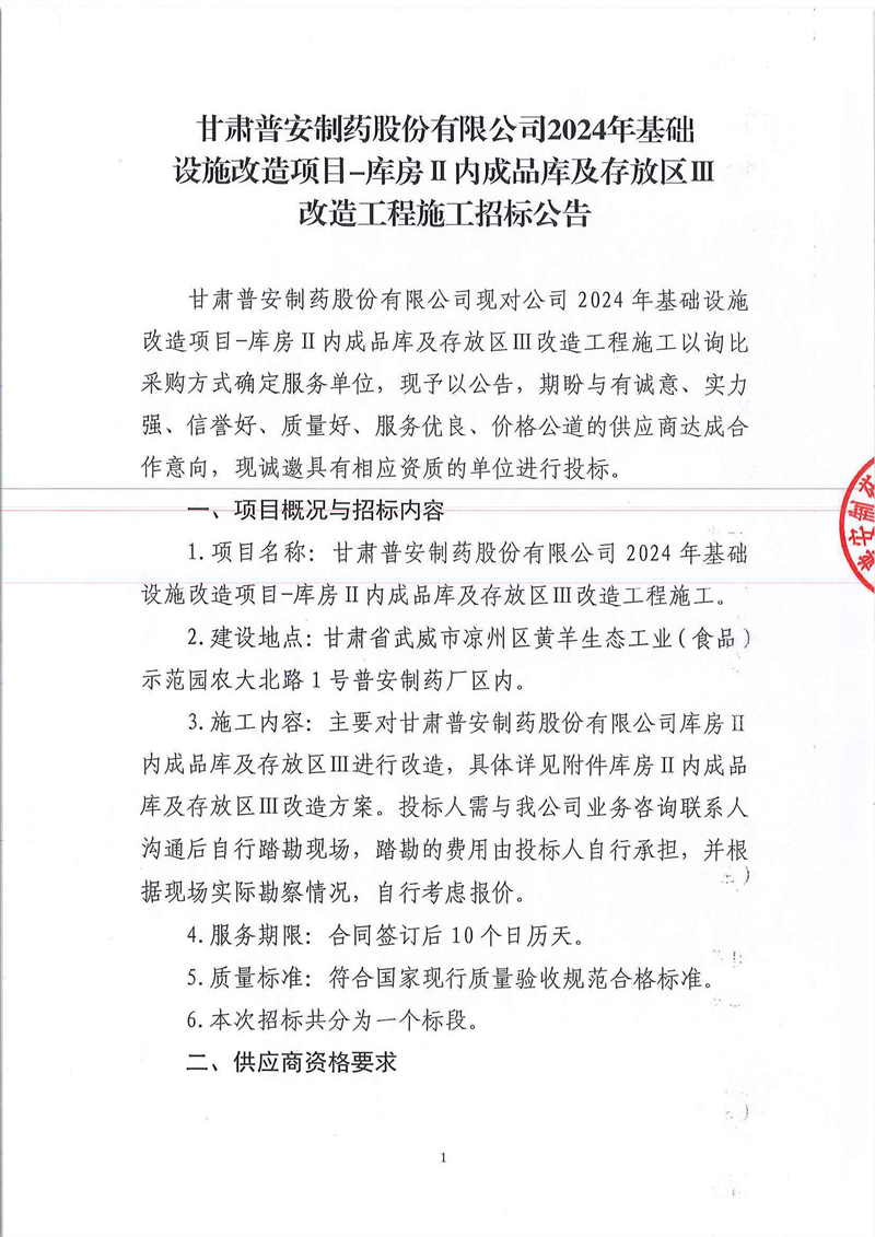 甘肅普安制藥股份有限公司2024年基礎(chǔ)設(shè)施改造項(xiàng)目-庫房Ⅱ內(nèi)成品庫及存放區(qū)Ⅲ改造工程施工招標(biāo)公告