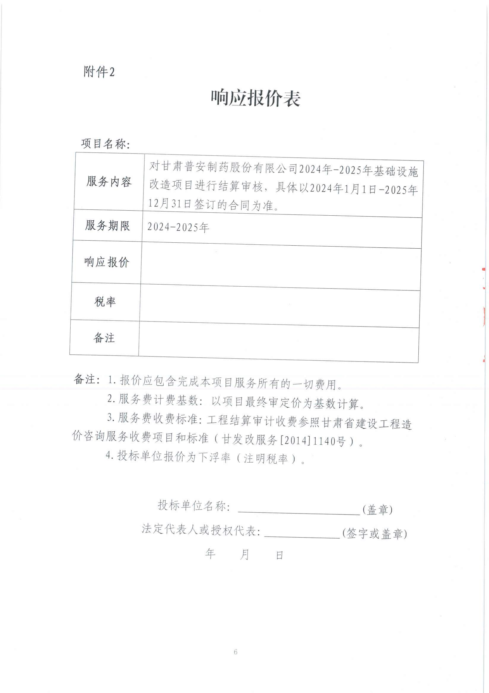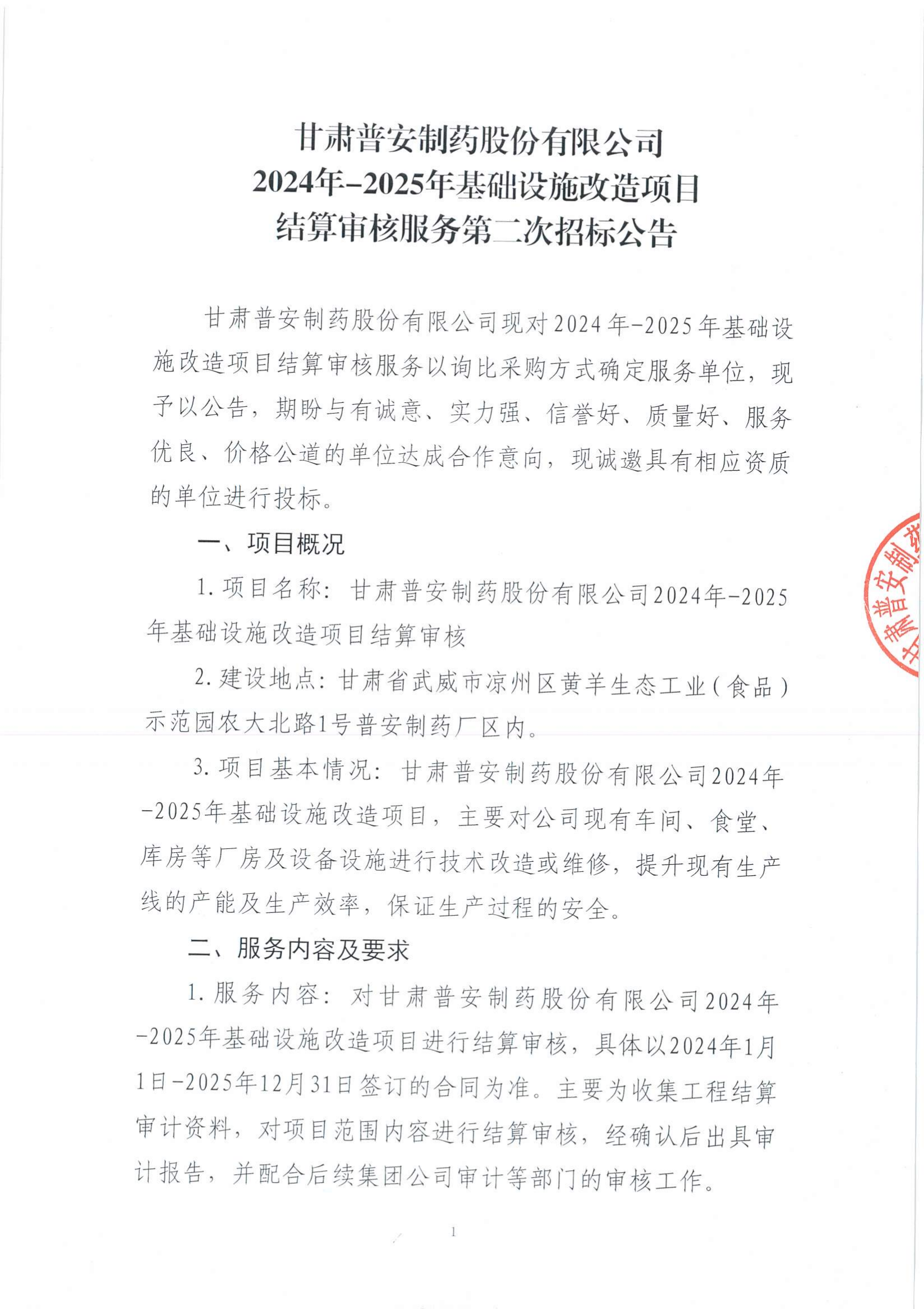 甘肅普安制藥股份有限公司2024年-2025年基礎設施改造項目結(jié)算審核服務第二次招標公告