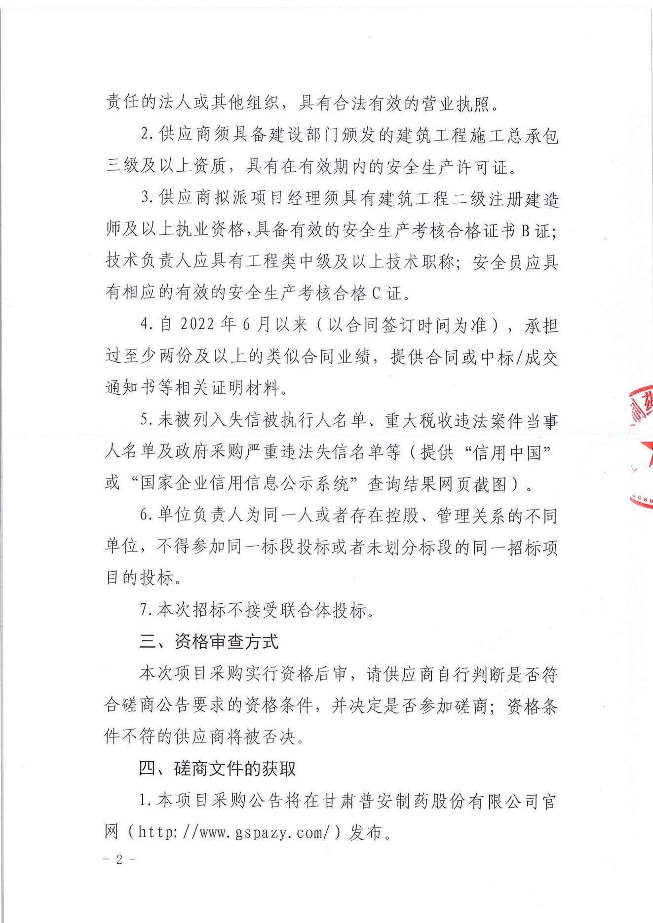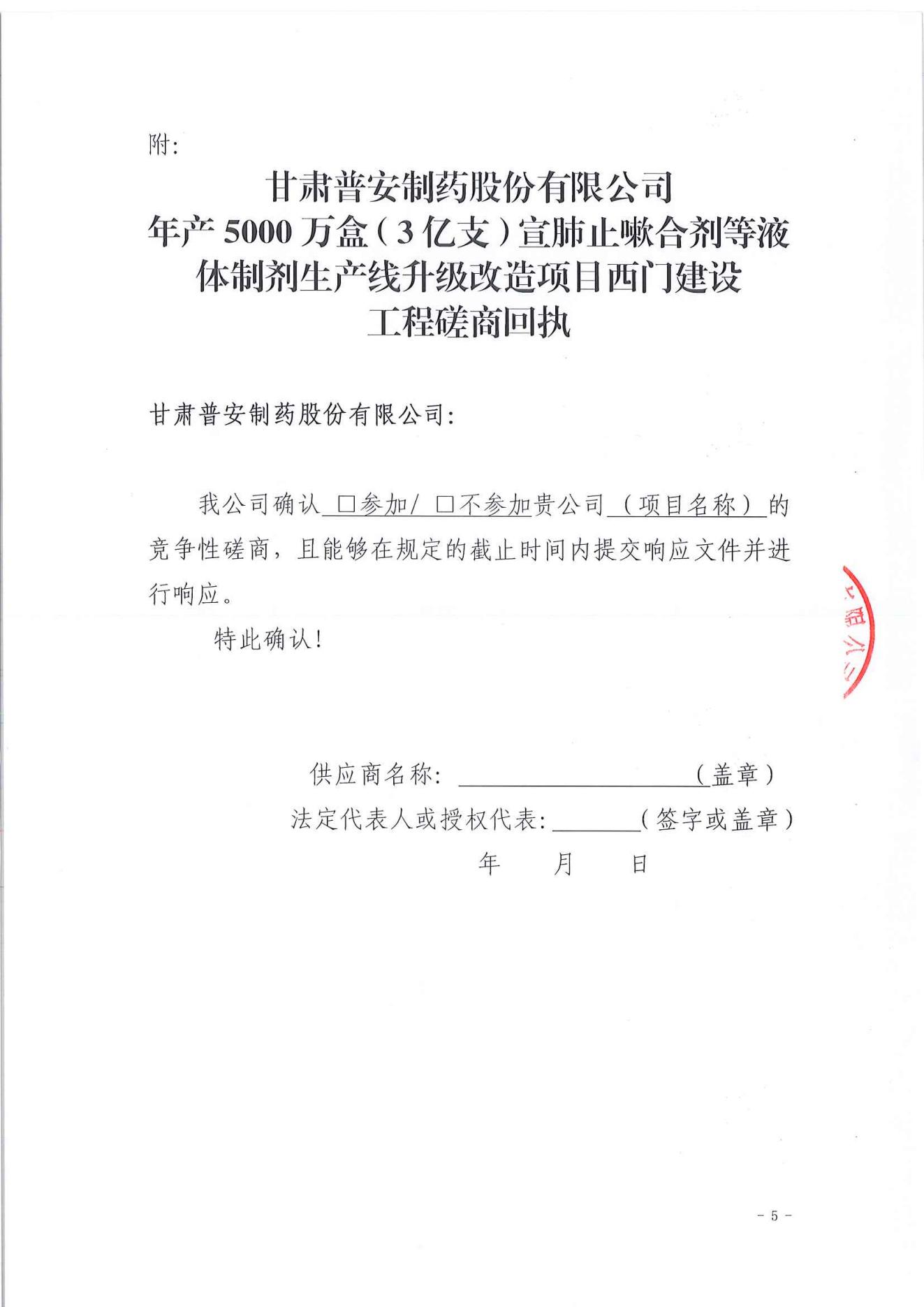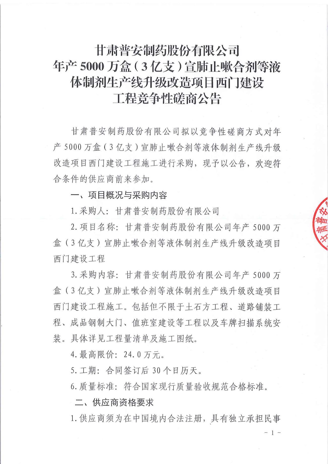 甘肅普安制藥股份有限公司年產(chǎn)5000萬(wàn)盒(3億支)宣肺止嗽合劑等液體制劑生產(chǎn)線升級(jí)改造項(xiàng)目西門建設(shè)工程競(jìng)爭(zhēng)性磋商公告