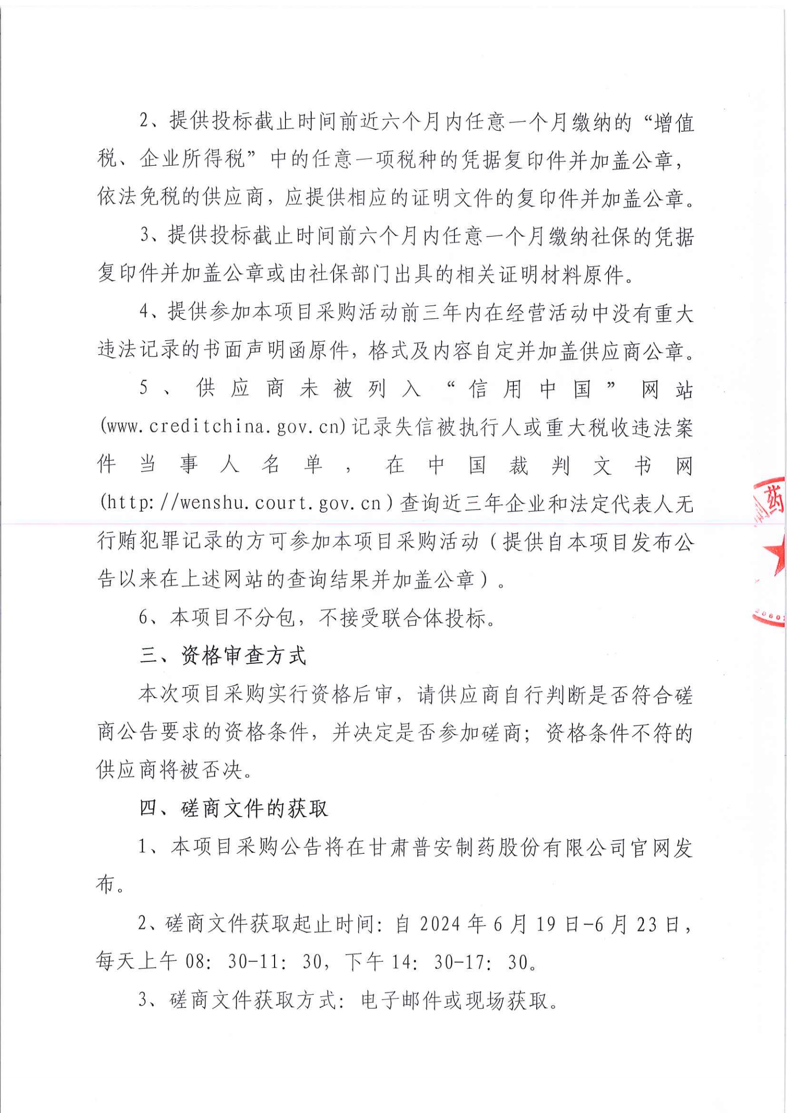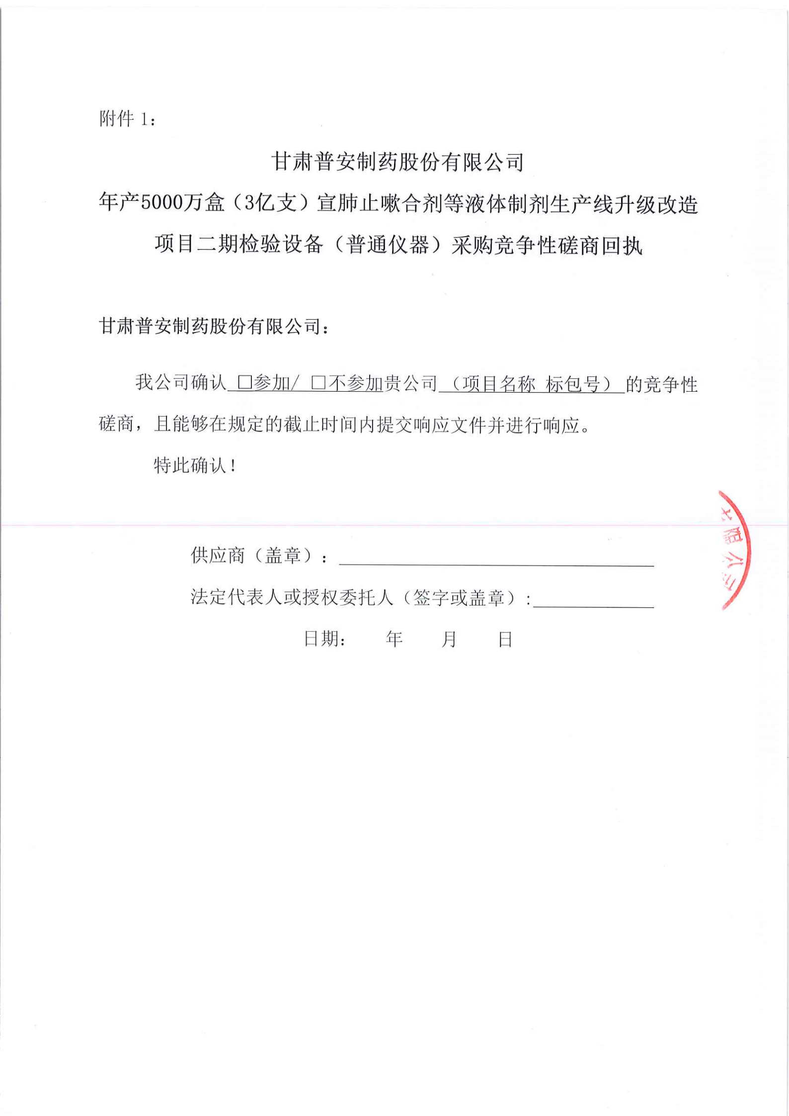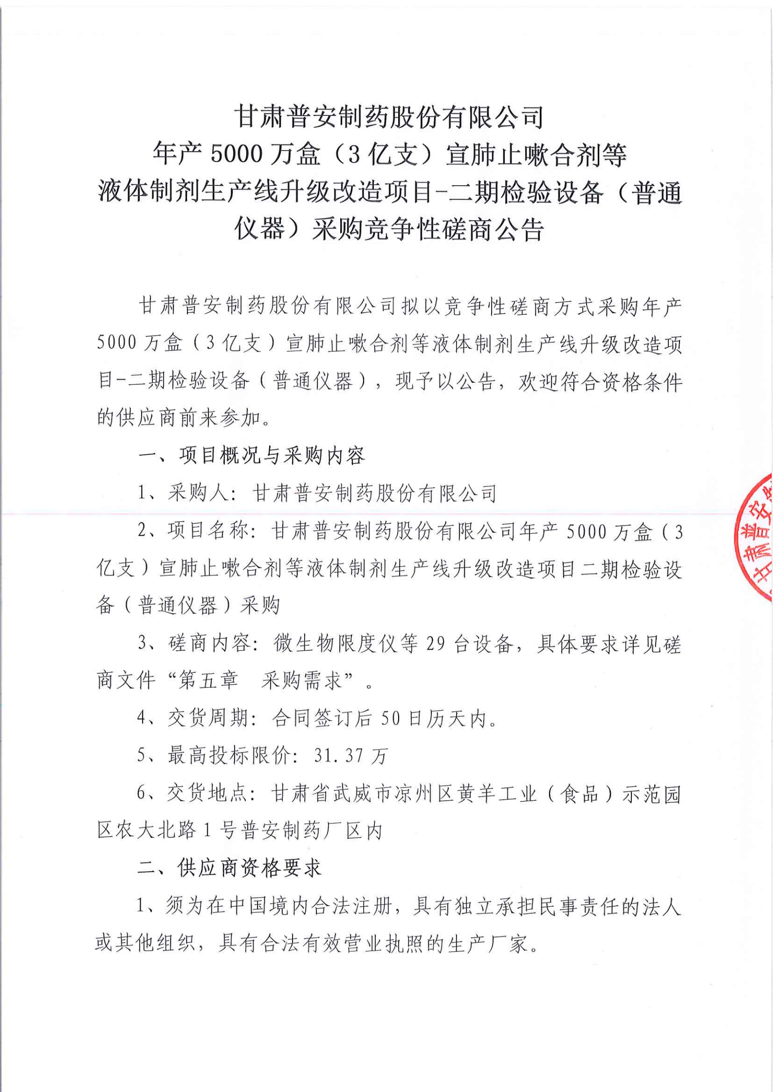 甘肅普安制藥股份有限公司年產(chǎn)5000萬盒(3億支)宣肺止嗽合劑等液體制劑生產(chǎn)線升級(jí)改造項(xiàng)目二期檢驗(yàn)設(shè)備(普通儀器)采購競(jìng)爭(zhēng)性磋商公告