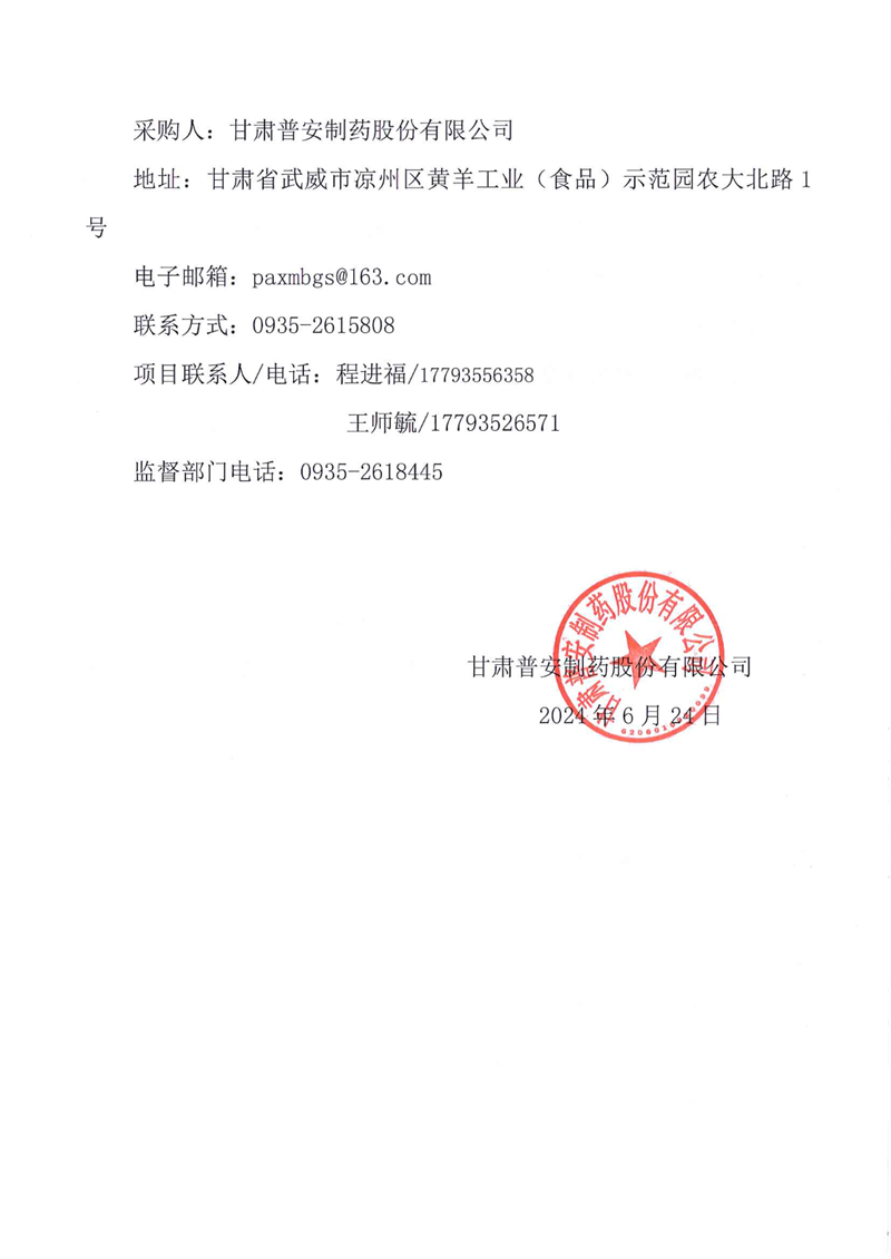 甘肅普安制藥股份有限公司2024年基礎(chǔ)設(shè)施改造地溝管道維修更換工程競(jìng)爭(zhēng)性磋商公告