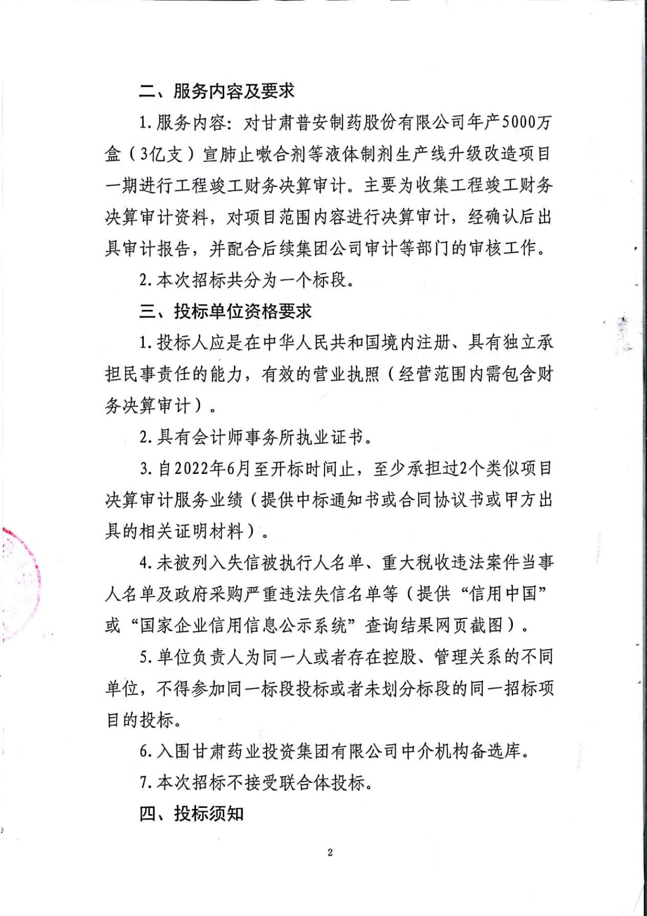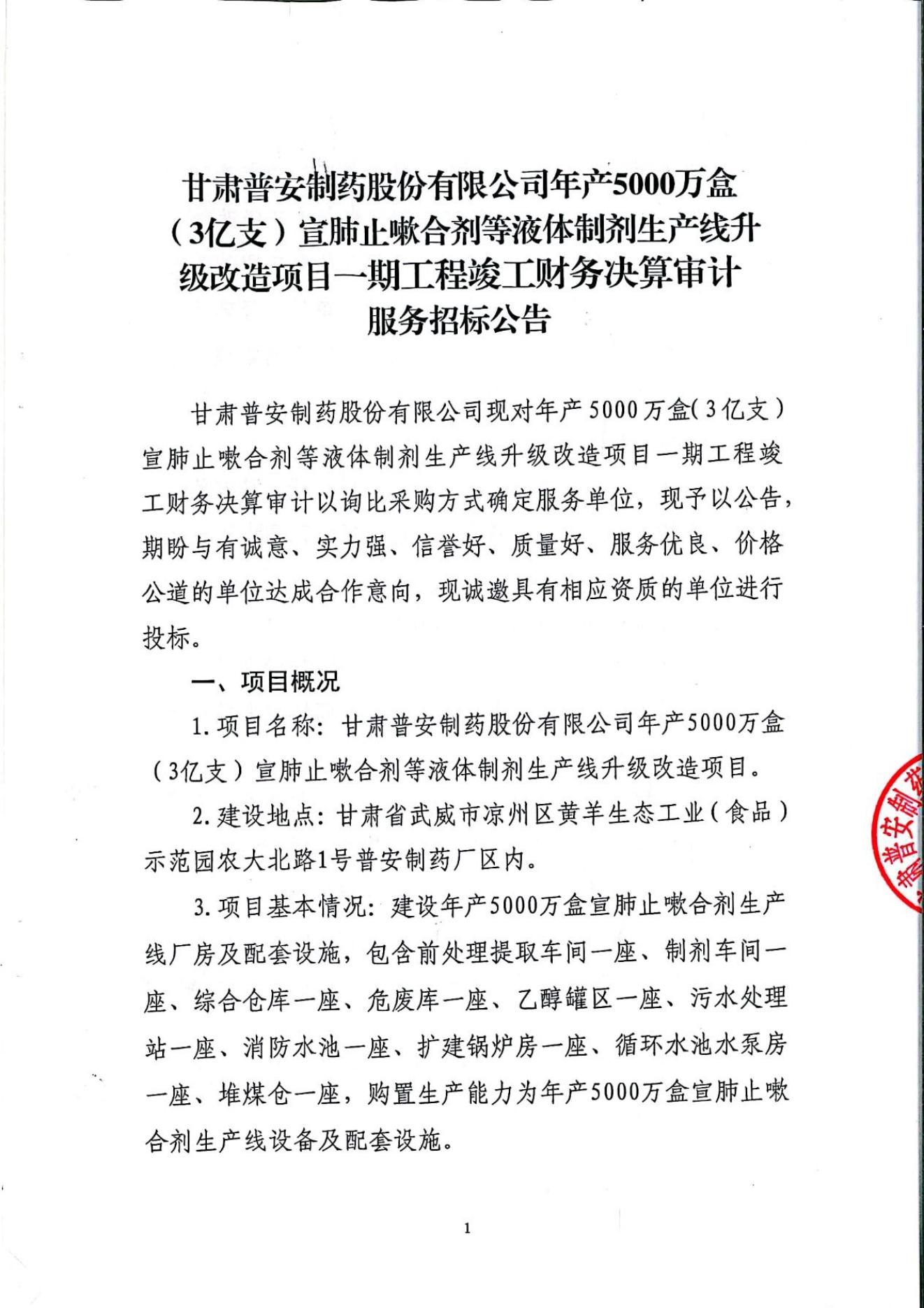 普安制藥年產(chǎn)5000萬盒宣肺止嗽合劑等液體制劑生產(chǎn)線升級改造項目一期竣工決算審計服務(wù)招標(biāo)公告