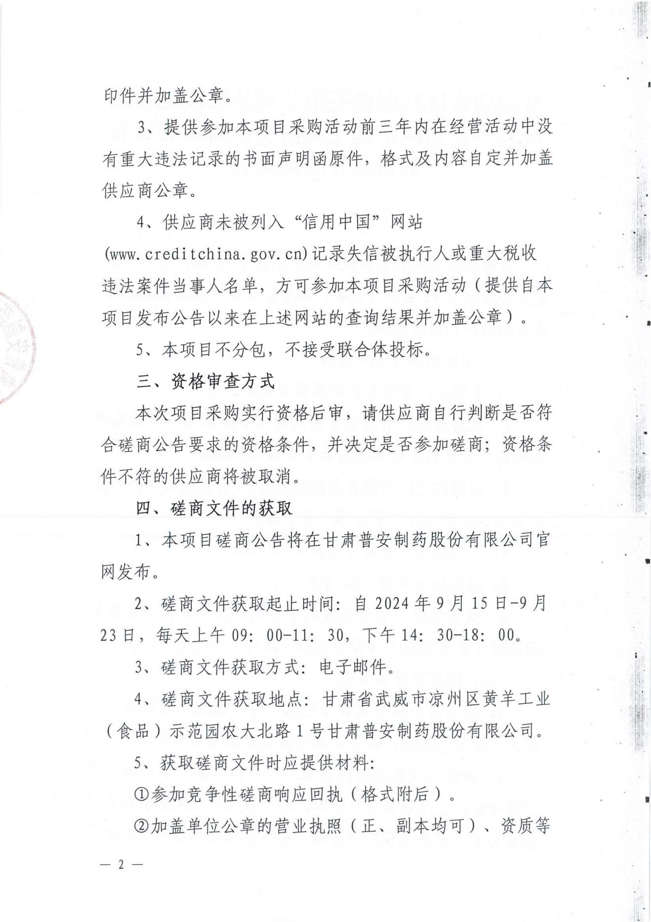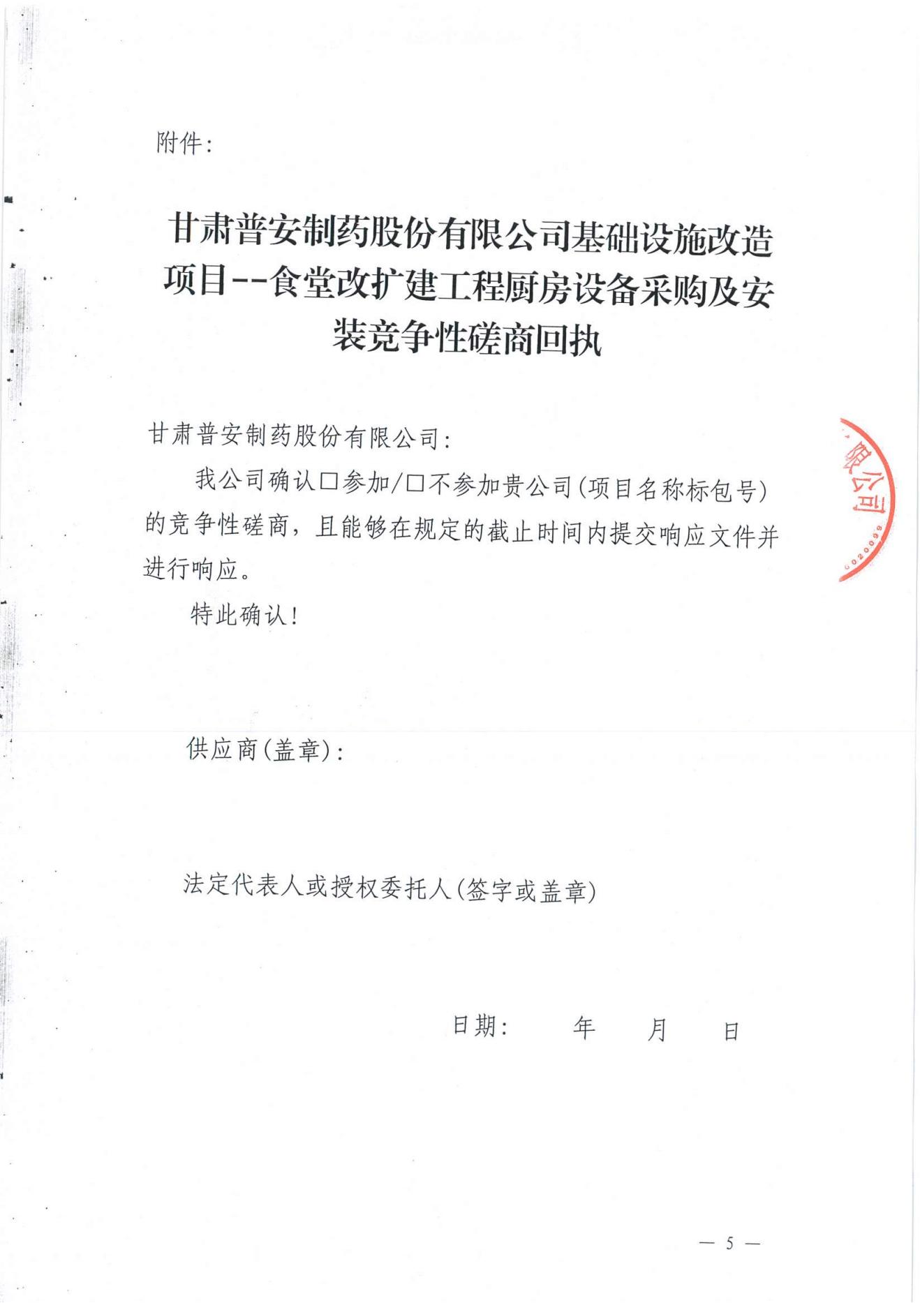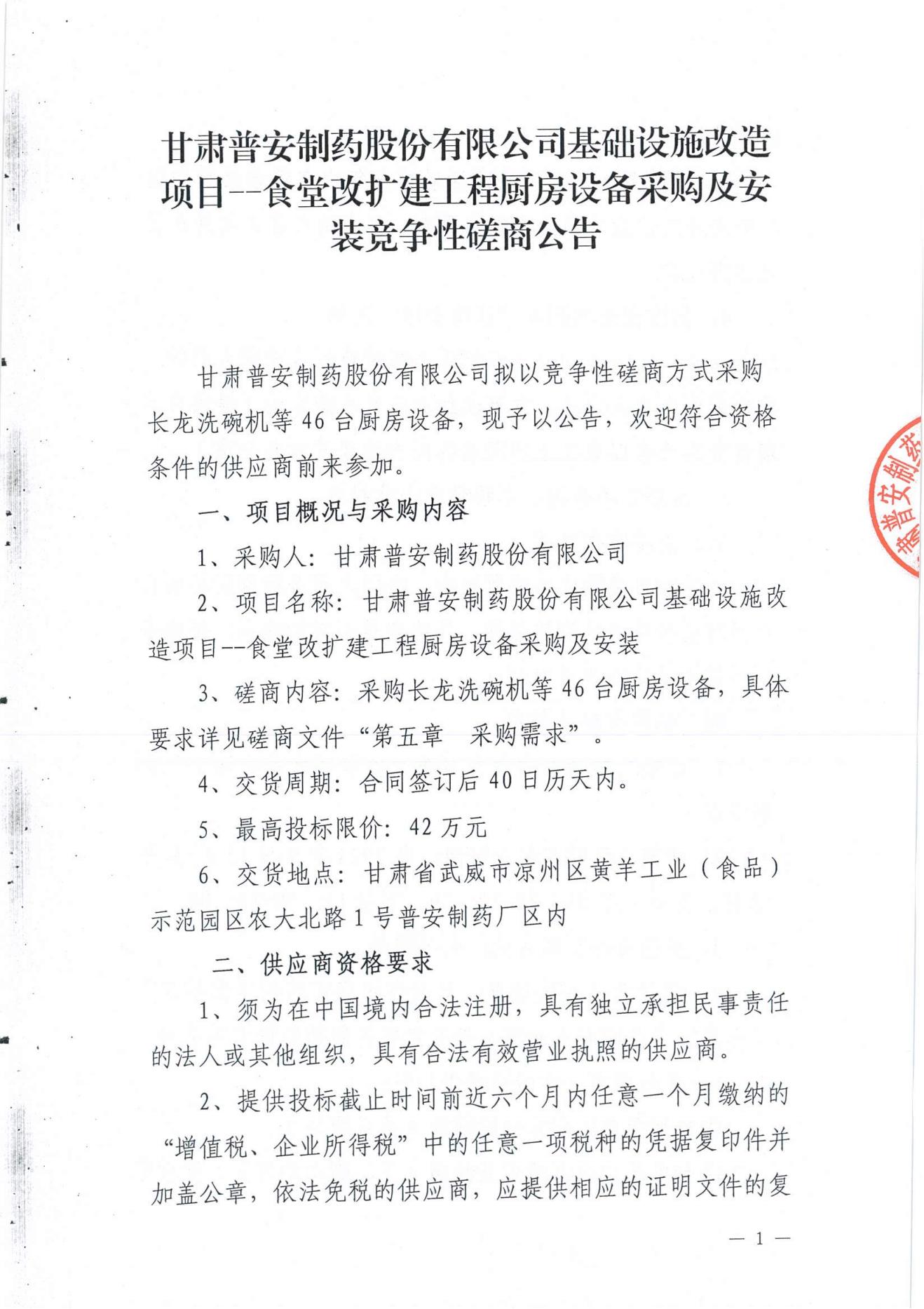 甘肅普安制藥股份有限公司基礎(chǔ)設(shè)施改造項目--食堂改擴建工程廚房設(shè)備采購及安裝競爭性磋商公告