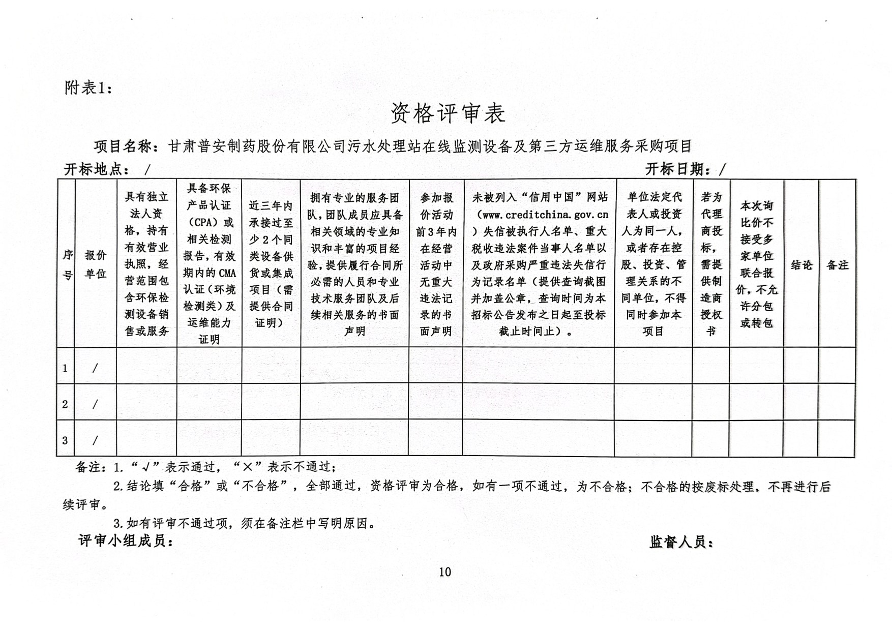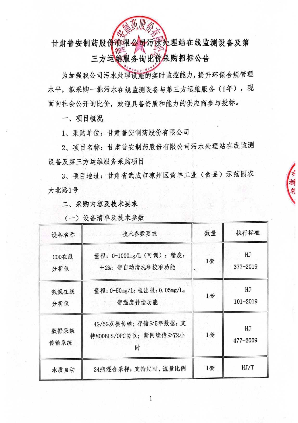 甘肅普安制藥股份有限公司污水處理站在線監(jiān)測設(shè)備及第三方運維服務(wù)采購項目